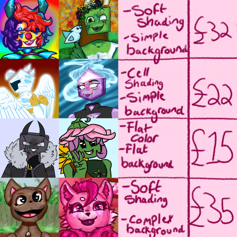 Sketch: £7Lineart: £10Color: £15Shaded: